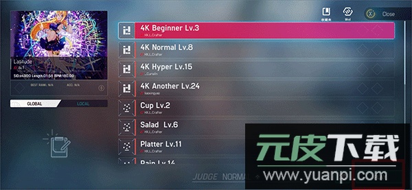 1、启动游戏后,在右侧列表挑选一首曲目;