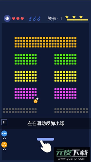 使用手指左右拖移底部挡板,及时接住弹回的小球。