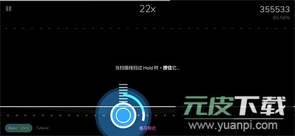 3、游戏开始后,跟随扫描线的移动轨迹,在准确时机点击音符。