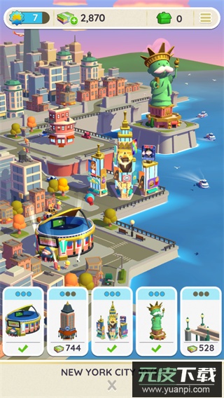 1、游戏采用全3D立体美术设计,角色造型可爱,建筑模型精致生动;