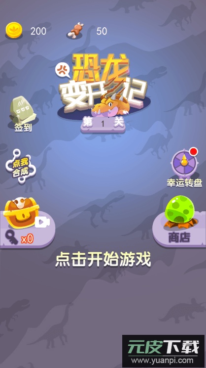 1、玩家需在不同环境中完成恐龙变身,通过闯关挑战展开竞技冒险;