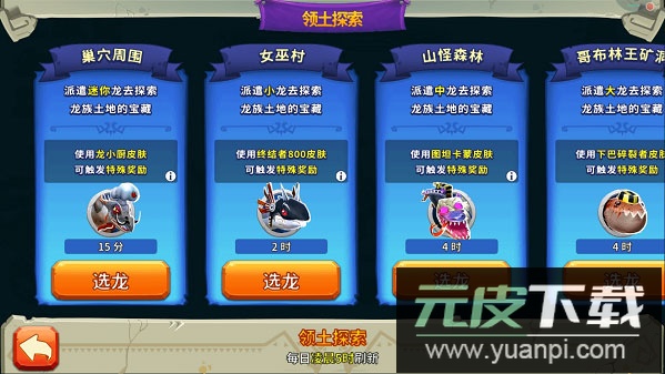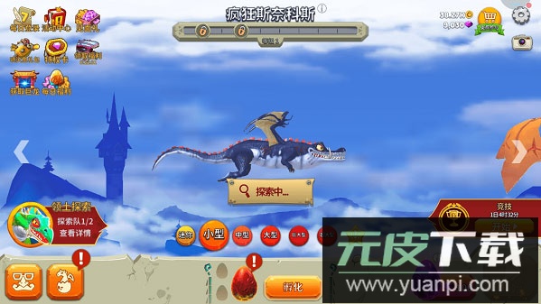 2、进入探索界面后,依据任务要求选择飞龙、皮肤及宠物。可参与探索的龙体型包括:“迷你”、“小型”、“中型”、“大型”、“巨型”、“超巨型”;