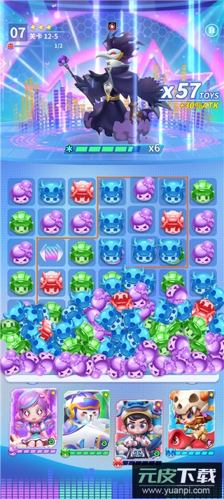 3、借助玩偶技能改变棋盘局面,单次消除棋子越多,对首领伤害越高;不同玩偶机制能搭配出多种战斗流派;