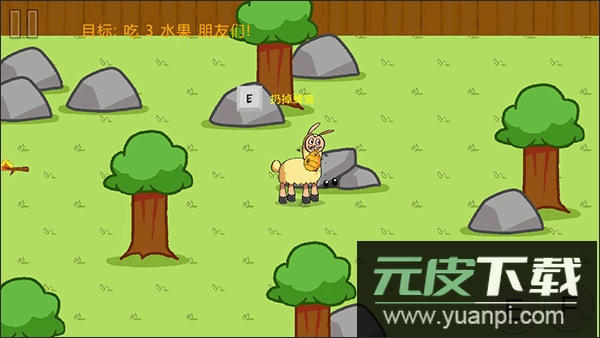 5、得到香蕉并喂食后,拉姆的饥饿仍未缓解;随后我们遇到了三位水果朋友,它们提议一起玩捉迷藏游戏。