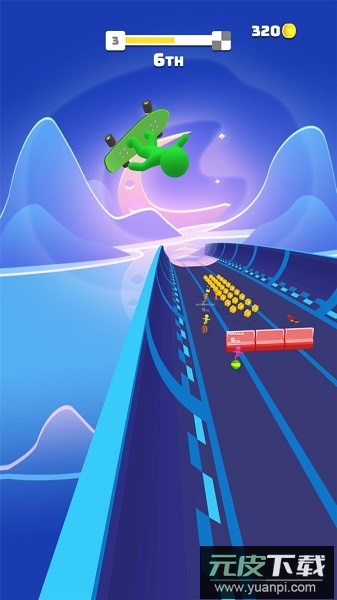 这是一款动作闯关游戏,赛道沿途散落着大量金币,也布满了各式障碍。这些障碍并非全然有害,部分反而能提升角色的滑行能力;成功越过它们,滑行效率便会增强。随着关卡等级提升,道路上出现的物品数量与种类也可能逐渐增多。