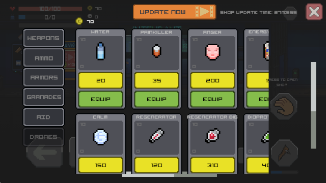 丧尸大楼袭击采用像素画面风格,玩家置身于丧尸横行的摩天大楼内,每一层都潜伏着新的威胁与资源;游戏结合roguelike机制,每次体验都因随机生成的内容而不同,充满不确定性;玩家需要不断搜寻食物、武器与医疗用品来维持生命,合理规划路线,管理体力与背包空间,逐步揭开大楼背后的谜团并寻找逃生方法;游戏提供多种武器选择,包括手枪、匕首、机枪、火箭筒等,每种武器特性与适用场景各异,玩家需根据僵尸距离和数量灵活选用,例如远距离单个目标用手枪,近身多目标可先用手枪拉开距离,再切换匕首快速解决。