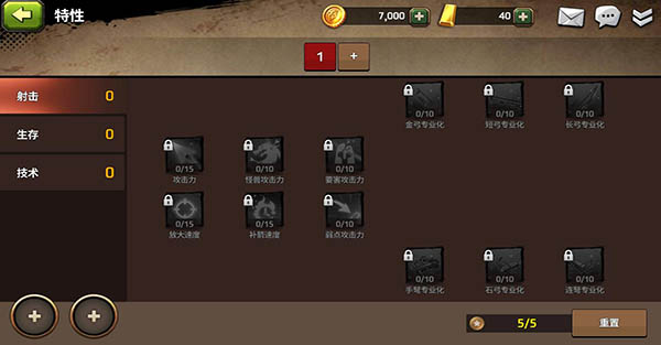 特性分为射击、生存、技术三大分支,消耗特性点进行升级,特性点可通过参与竞技场对战获得。