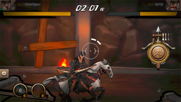游戏主要玩法是骑乘移动的战马,使用弓箭或弩箭射击对手,先耗尽对方生命值即为胜利。操作虽简明,但瞄准过程中的颠簸与时机把握带来了显著的紧张感。游戏采用水墨风渲染,角色与场景均为3D建模,配合独特的体感视角操控,还原了弓弩射击的真实反馈。