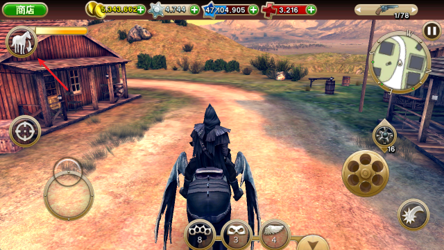 7、点击左上角按钮可以骑乘马匹,加快移动速度。