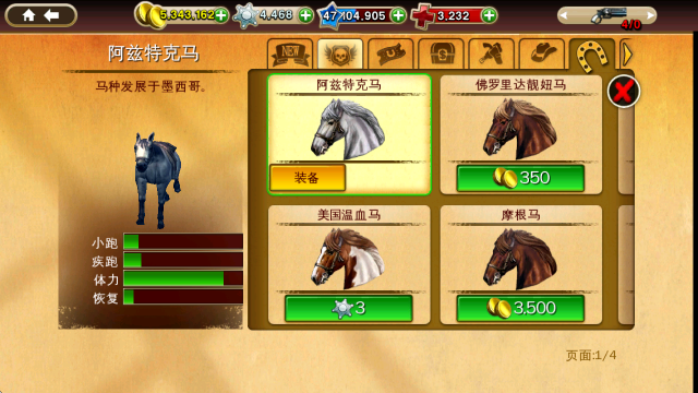 4、商店中也出售各类角色服装与不同种类的骏马。