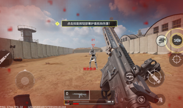 5、右手触控屏幕控制视角方向,使用一键开镜开火功能消灭敌人;