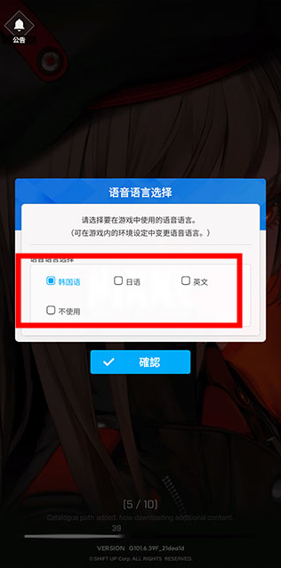接下来选择游戏内语音语言,之后在游戏中仍可调整更换。