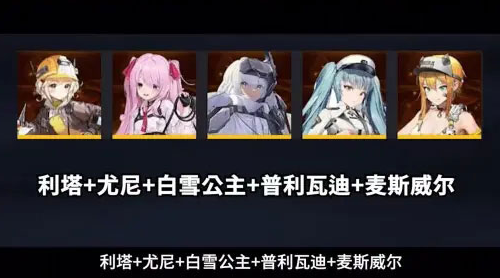 2、白雪公主阵容:利塔、尤尼、白雪公主、普利瓦蒂及麦斯威尔组合,侧重技能联动;