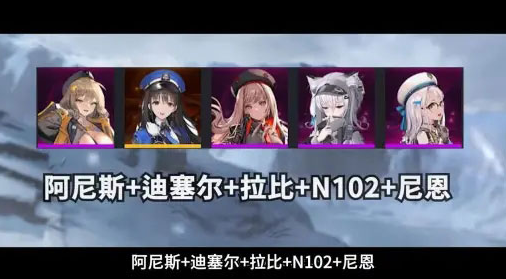 1、前期过渡队伍:阿尼斯配合迪塞尔、拉比、N102与尼恩,适合游戏开局阶段;