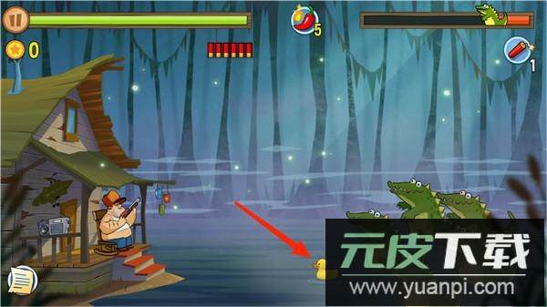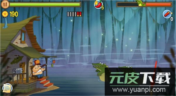 1、动物们企图围攻小木屋,而你将化身大叔拿起武器,誓死守护这片沼泽领地;