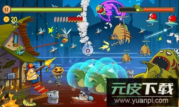 这是一款融合了塔防与射击元素的休闲手游,核心目标是保卫你的沼泽小屋,击退一波波来袭的古怪动物。你可以使用猎枪、炸弹乃至火焰喷射器等多样武器进行战斗,并通过升级来强化火力。关卡设计丰富,敌人从鳄鱼到外星生物应有尽有,卡通风格的画面与幽默的音效相结合,让整个防御过程既轻松又富有挑战性。