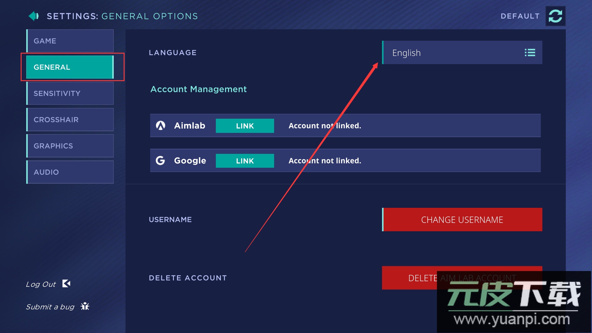 选择左侧的“GENERAL”栏目,然后在右侧找到语言选项栏。