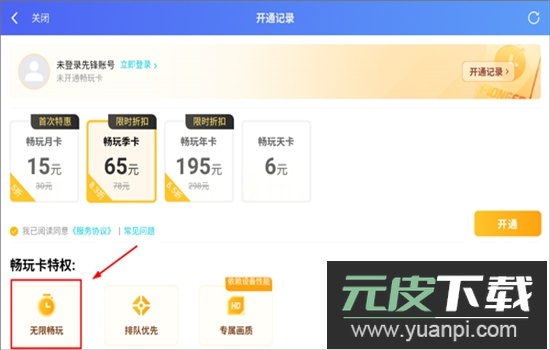 3、解除限制后,在云游戏内找到畅玩卡服务,点击立即开通;