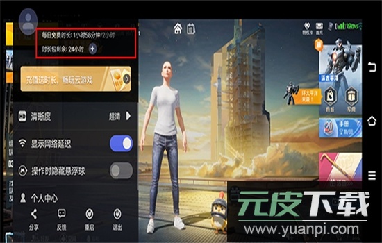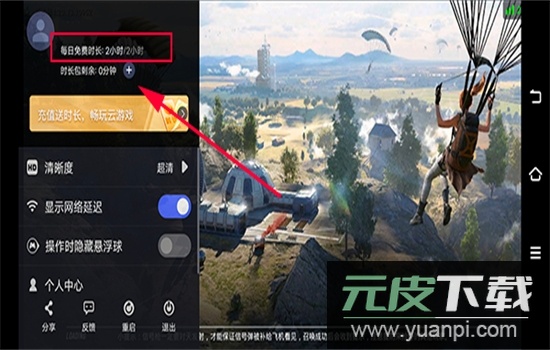 3、登录成功后点击左侧悬浮窗可查看当前剩余时长,通过加号按钮能进行时长充值或领取免费时长;