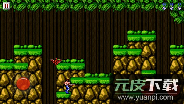 2、屏幕左下角的虚拟摇杆负责控制角色移动,右侧按键则分别对应开火与跳跃,用于攻击敌人和躲避子弹,需灵活配合使用。