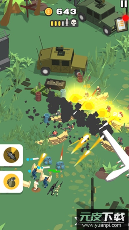 2.通过投掷炸弹摧毁敌方据点,一路突破重重防线,将所有对手逐一清除;