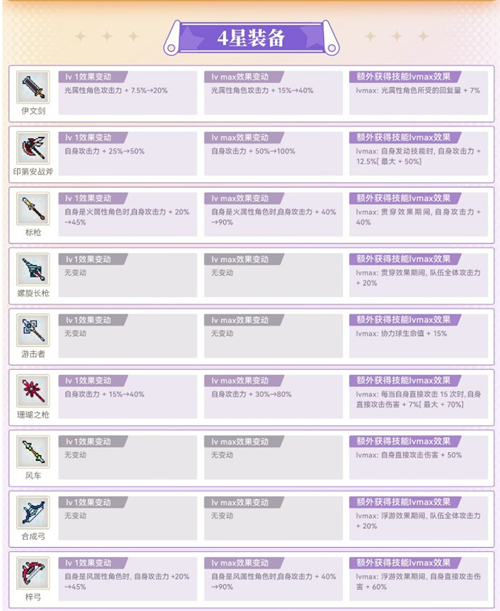 以下装备性能将得到强化: