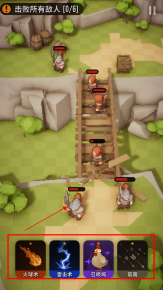 2、将屏幕下方的技能图标拖拽至敌人身上即可释放魔法;