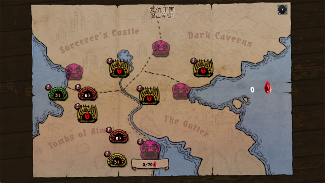 1、完成新手指引剧情后,可以选择地图开始挑战。