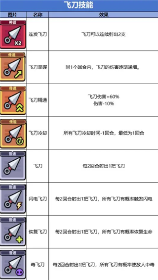 飞刀流(9技能) 核心武器:风雨者 天使弓 推图核心技能: 连发飞刀、飞刀冷却、飞刀掌握 通常搭配连爆流; 风语者 —— 以连击触发飞刀效果; 天使弓 —— 叠加飞刀释放次数