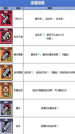 新手推荐流派 连爆流(7技能) 核心武器:裁决剑 推图核心技能: 连击之魂、三相之力 裁决剑以高连击打伤害; 物理输出通用