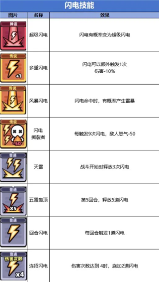 闪电流(9技能) 核心武器:断绝权杖 核心技能: 闪电撕裂者 闪电流推图非常依赖闪电撕裂者技能,要注意控制boss怒气值,不然很容易被boss击杀; 未拿到撕裂者,可搭配冰刺流持续冰冻boss通关; 推图期间如遇到五雷轰顶可优先拿,在技能升级时优先升级为 五雷轰顶+; (五雷轰顶+技能效果,第五回合开始,每回合释放5道闪电) 通常搭配冰刺流推图