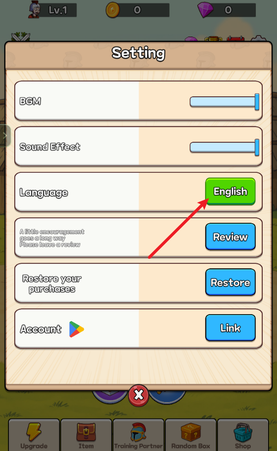 找到并选择“language”后面的按钮,进入语言选择栏目。