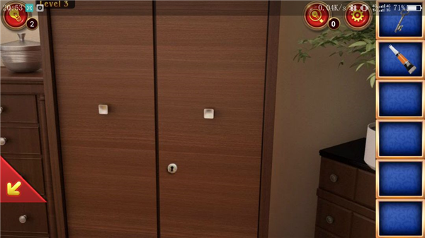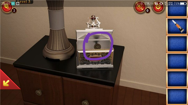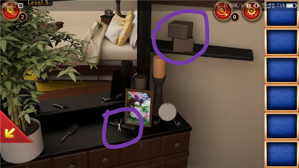 点击位置①,拿到梳妆台上的剪刀以及盒子后方的胶水。