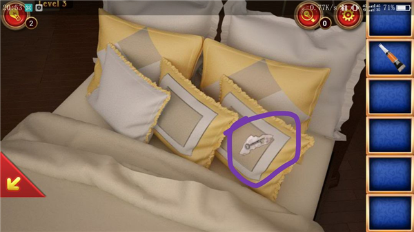 点击位置②,使用剪刀剪开枕头,获得一把钥匙。