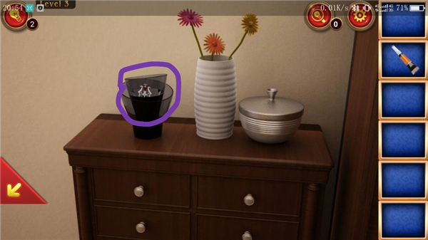点击位置④,将花瓶放在架子上,连续点击两次左侧的黑色花瓶,一个装饰品随之出现。
