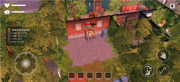 2、根据游戏提示,学会使用撬棍破坏家具。将挡路的家具全部拆除,收集掉落的材料,然后进入内部区域。