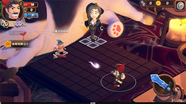 3、冒险关卡区:采用随机生成的棋盘式关卡,玩家需操控角色移动、战斗、收集宝物,应对各种挑战;