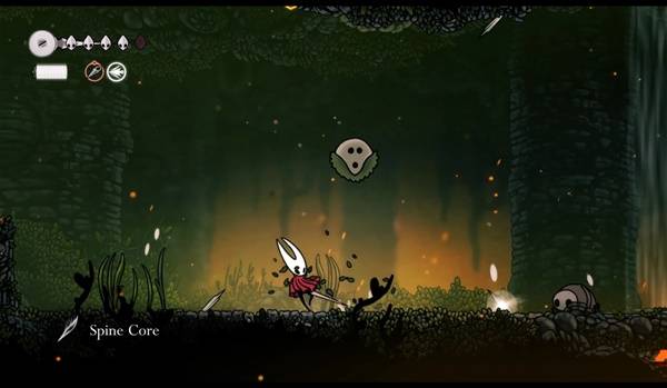 收集脊骨核心的关键是引诱脊背虫向你发射尖刺,随后用骨钉击碎这些插入地面的尖刺;注意,脊背虫掉落的光点物品必须接触地面后才能拾取。
