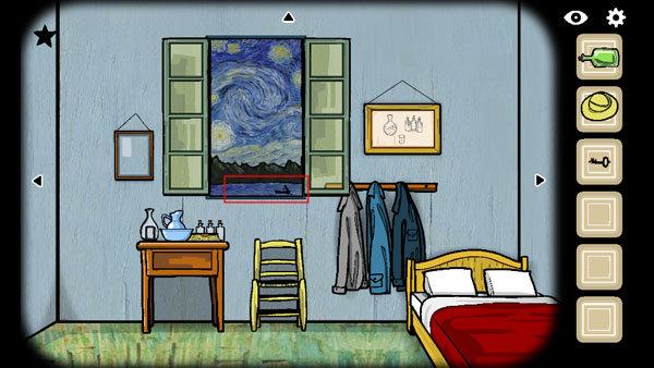 1. Arles的景象:第一个案件中,先取走画框上的标签,再点击画内窗户,得到四位数字。