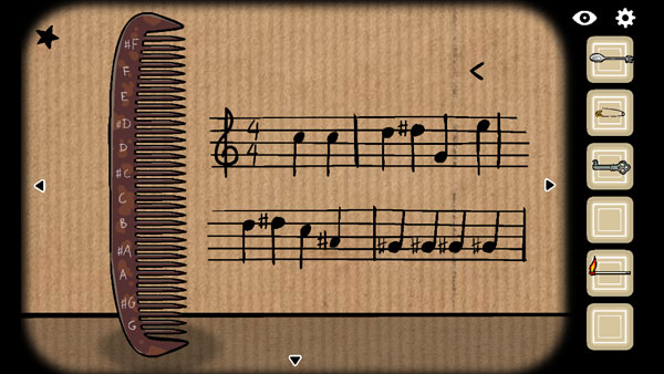 2. 完成拼图,在梳子上弹奏音符BBDDBB#GABDBA#GA,获得钥匙。
