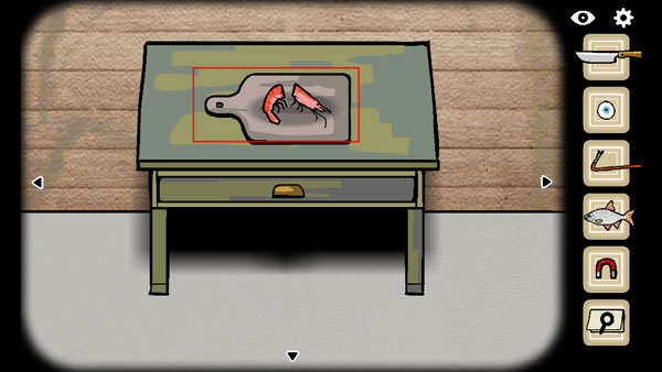 6. 将虾放在砧板上切开,获得钥匙和虾头;虾头可钓起一具尸体,用刀划开得到苹果,完成“苹果”成就。