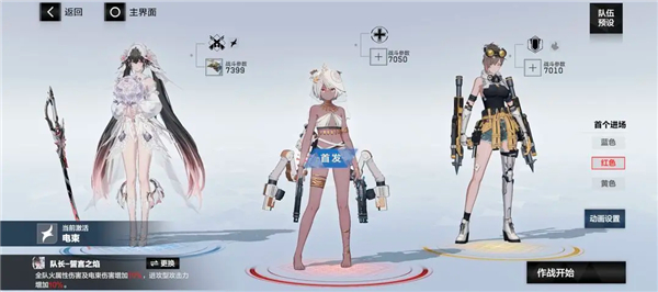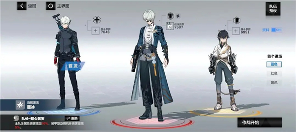 4、前期物理队(凛冽单核心):亚里莎・回音(蓝位,队长),七实・风暴(红位,首发),罗塞塔・凛冽(黄位)