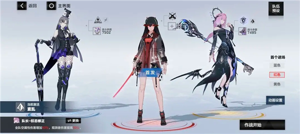 6、小空队:莉莉丝・谬影(蓝位),露西亚・红莲(红位,首发)【任意进攻型角色均可】,伊什梅尔・幻日(黄位,队长)