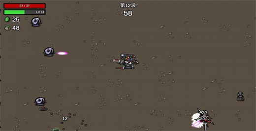 总共有20波敌人,每波的时长从20秒逐步提升到90秒,波次结束后会开启商店,商店可以购买道具和武器,也能消耗材料刷新商店内容。