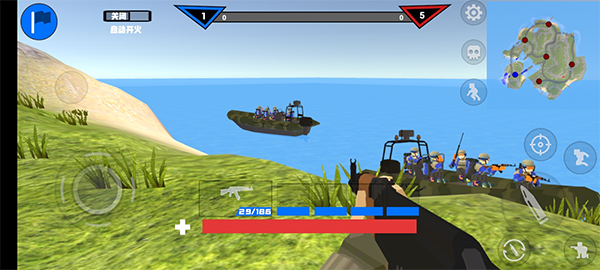 3、利用屏幕左侧的虚拟摇杆控制移动方向;注意观察右上角的小地图,其中红点标识为敌方单位。作战过程中需积极与队友沟通协作,保持隐蔽,随时滑动屏幕调整视角观察周围环境;将敌方全部清除即可赢得本局胜利。