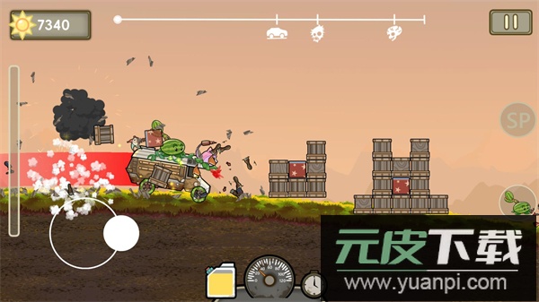4、游戏中左侧控制车辆前后移动,右侧按钮用于发动已装配的植物配件进行攻击。