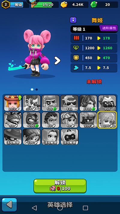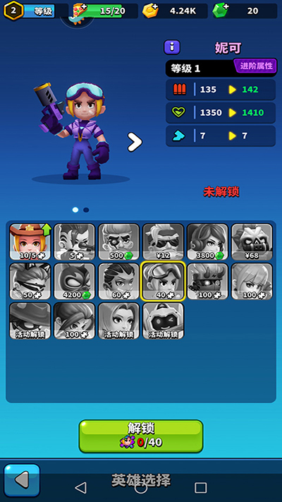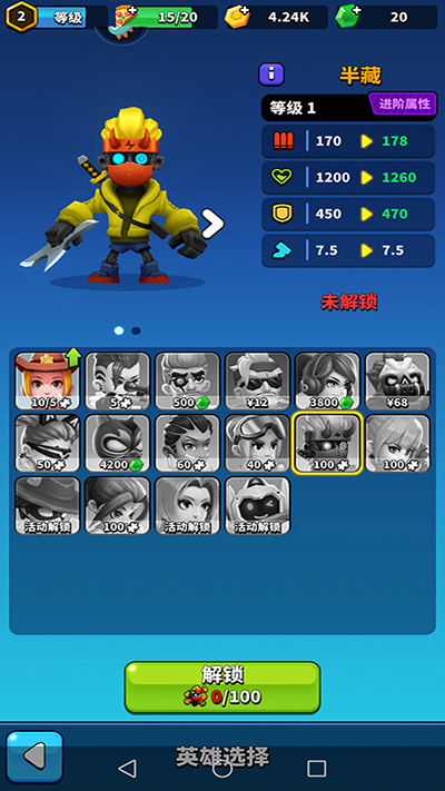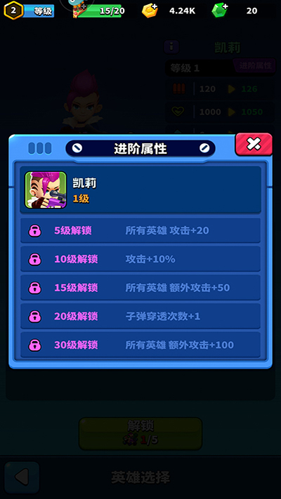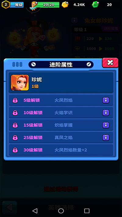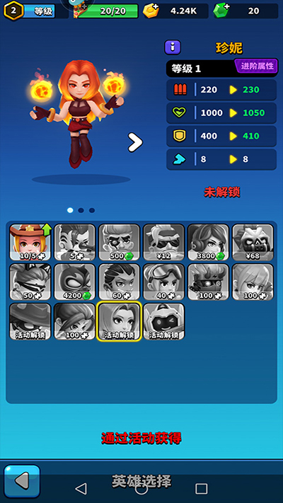 游戏内设有近二十位英雄角色,进入英雄模式后可逐步解锁并使用他们,持续提升战斗技巧;