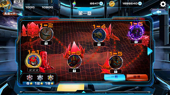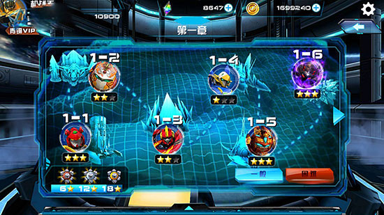 普通难度的关卡地图以蓝色标识,通关奖励较为基础。
