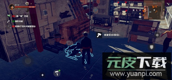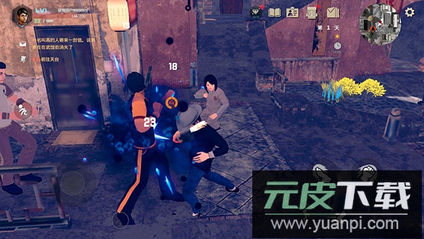 2、玩家首先需要接取第一天的任务;游戏采用横版视角,左侧虚拟摇杆控制移动,右侧设有攻击、跳跃等功能按键。