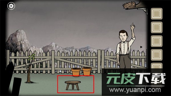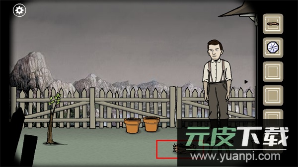 点击场景下方的花盆,先取走花盆左侧的虫子,再点击左边花盆获得一件道具。